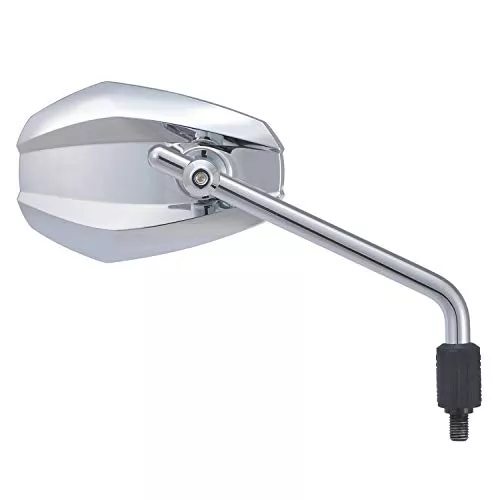 ボディ部位には軽量樹脂を、ステー部分にはスチール製を採用して軽量化を実現したミラーです。V字の凹凸がアクセントになった大きめな鏡面が見た目だけでなく、視認性も高めます。数種類のボルトが付属されているので取り付けも安心です。