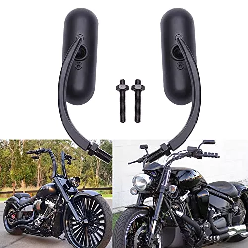 ミラーの存在感を極力小さくするためにフォーククランプにつけるミラーはハンドル周りがすっきりし、アメリカンバイクによく似合うスタイルです。視野が限られる傾向があるため、商品の種類は多くありません。探すときには根気よく探しましょう。