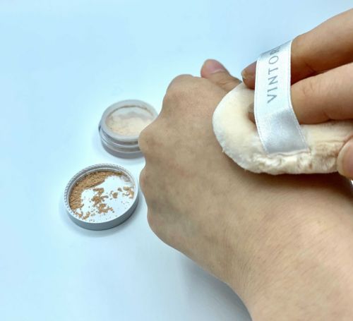 ルースパウダータイプのファンデーションは使い方が難しい、という声も聞きます。まず、少量を蓋に出し、パフにパウダーを含ませます。その後、手の甲などを使ってパフについたパウダーの量を調節し、顔につけていきます。顔の中心からつけ始め、フェイスラインに向かってぼかしていくのがおすすめです。