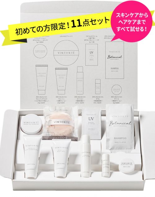 ミネラルシルクファンデーションをきれいにつけられる専用のパフや、セラミドスキンケア5日分を含んだ豪華11点セットなので、ヴァントルテのスキンケアアイテムにも興味がある方にもおすすめです。