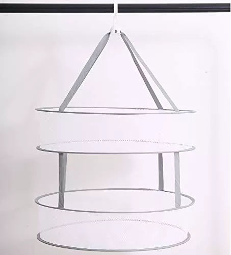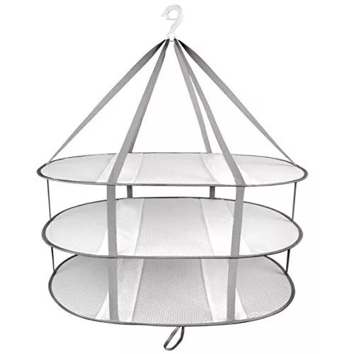 ラウンドガードが付いたネットが3段つながった平干しネットです。ネットは取り外しができるので、干す枚数に合わせてネットの数を調整できます。コンパクトサイズになり、付属の収納袋に入れれば勝手に開いてしまう心配もありません。