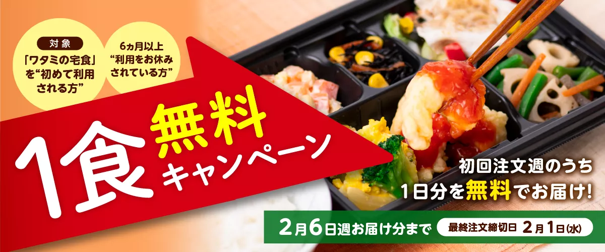 ワタミの宅食では利用が初めての方、もしくは6ヶ月以上お休みをしている方に向けて「1食無料キャンペーン」を実施しています。