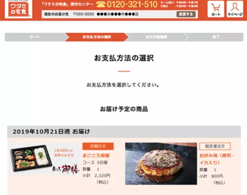 冷凍プランの場合は、現金後払い(コンビニ・郵便局での振込)代金引換、クレジットカードの中から選ぶことができます。