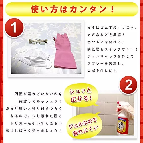 スパイダージェルはカビ取り剤の中でも強力で、業務用としても使われています。そのため、しつこいカビの目立つお風呂掃除にはピッタリのアイテムです。洗浄力が強い分、刺激も強いので気を付けて使用してください。