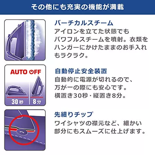 アクセススチームプラスの特徴は、1分間に20gとパワフルなスチーム量です。繊維の奥までしっかり届くので、シワ伸ばしはもちろん、ウィルス除去や除菌にも効果が期待できます。