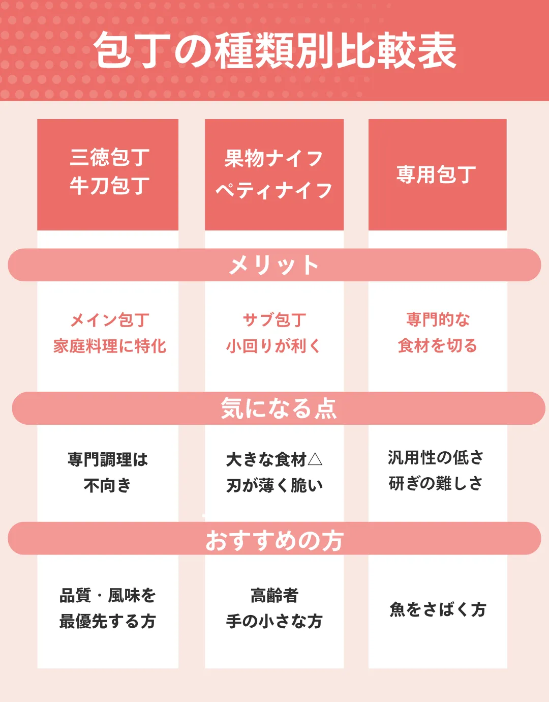 包丁のおすすめ早見表はこちら