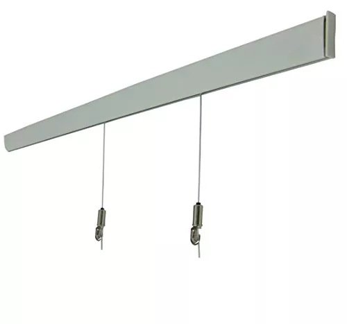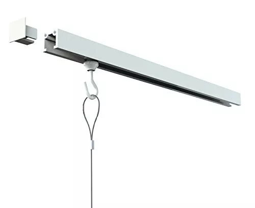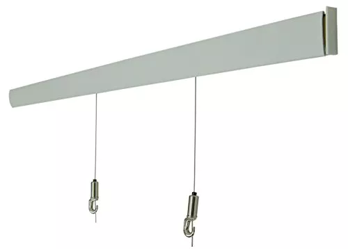 長さが65cmとコンパクトなモデルです。サイズも小さめな部屋を想定して、壁に後を残さないという配慮は賃貸におすすめとも言えるのではと思います。レールの取付から額の吊り下げに必要なケーブルやフックは二組が入っています。