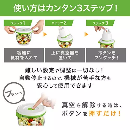 - ワンタッチで簡単に真空保存が可能
