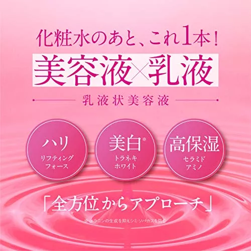 乳液と美容液が1本にまとまった商品で、化粧水のあとにこれ1本でスキンケアが叶うため時短でケアしたい方には特におすすめです。トラネキサム酸*が入っているので保湿力もあり、化粧水とあわせて使用すればよりもっちりとした肌が作れます。