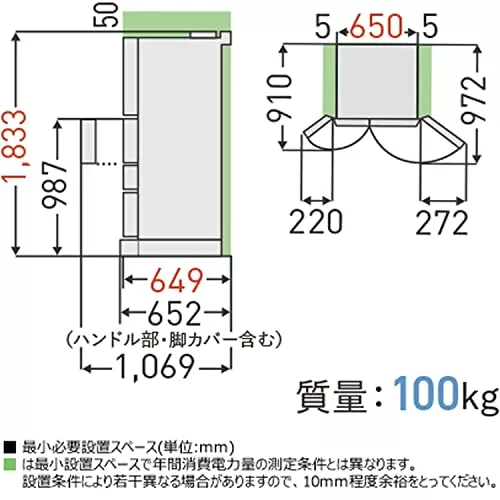シールで設置するだけなので、誰でも簡単に取り付けできます。工具が不要なのもうれしいポイントです。冷蔵庫の容量は600Lまで対応しています。