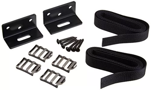 転倒防止ベルトが2本・固定金具が2個・固定部品が4個・固定ネジが6本同封されています。壁部分に金具をネジで固定するので、壁部分の下地など強度が十分あるか必ず確認しておきましょう。