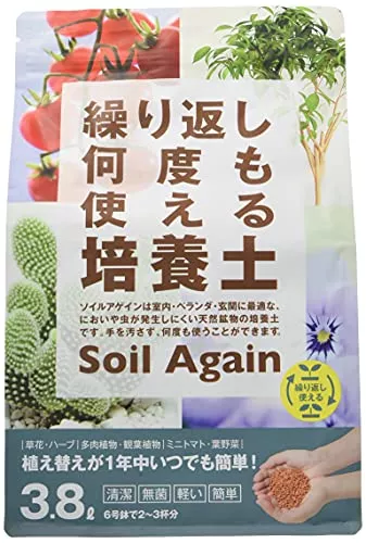 天然鉱物を培養したソイルアゲインは臭いや虫がわかない土で、室内・ベランダ・玄関などに置く観葉植物におすすめです。粒状になっているので普通の土と違って手を汚さずに使えます。虫や臭いが気になる方はぜひチェックしてみてください。