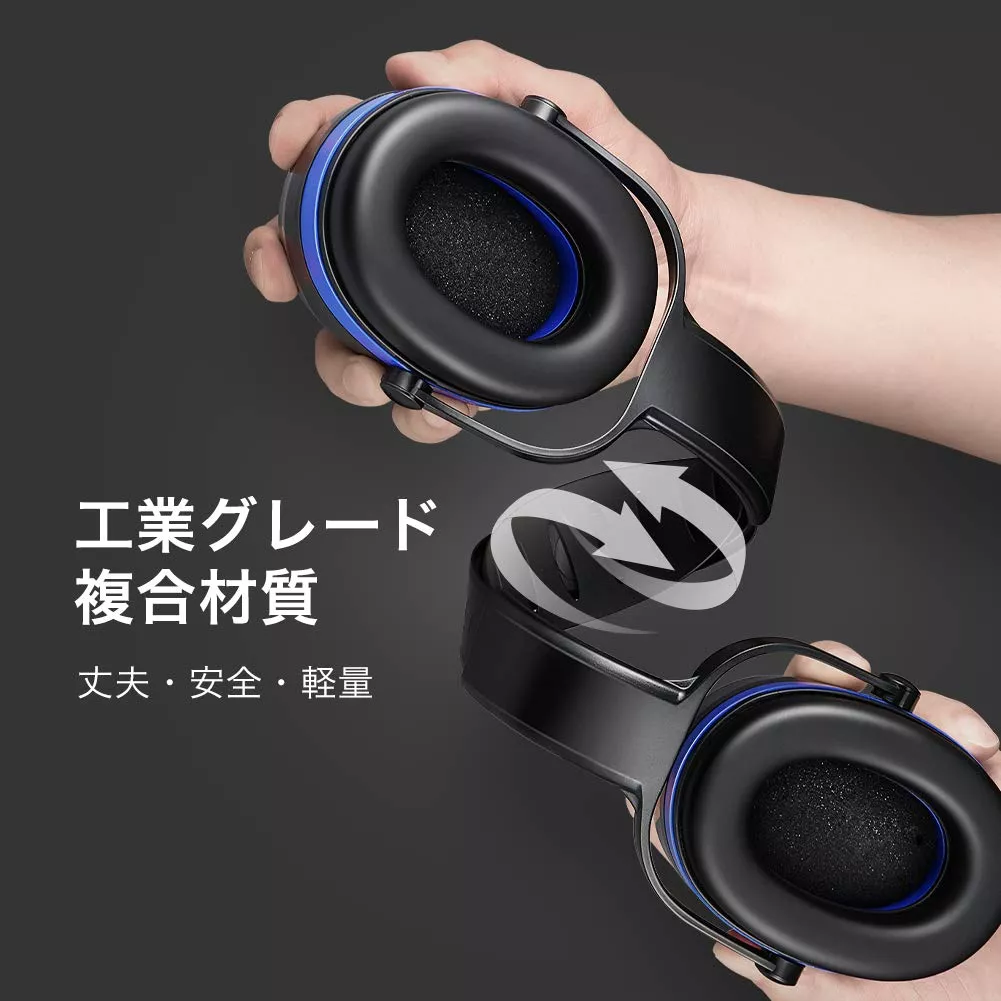 こちらの商品は、USと欧州スタンダード認証テストに合格した高い遮音性能を有するイヤーマフです。二層カップシーリング技術と8層の厚手素材を採用し、NRR(ノイズ減少率)29dBを達成しました。
