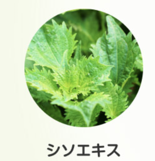 シソから抽出されるエキスで、天然ハーブともいわれています。ニオイをすっきりさせてくれるエキスです。日本の食文化にも香味野菜として定着しているシソですが、昔は、葉を煎じて飲むなど健康に役立てられていました。