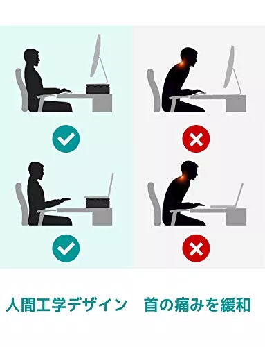 人間工学に基づくデザインで、目線の位置を上げモニターを見やすくします。目の疲れや肩の疲労を軽減し、作業効率をアップできるでしょう。耐荷重も高く、大画面のモニターも難なく設置できるでしょう。