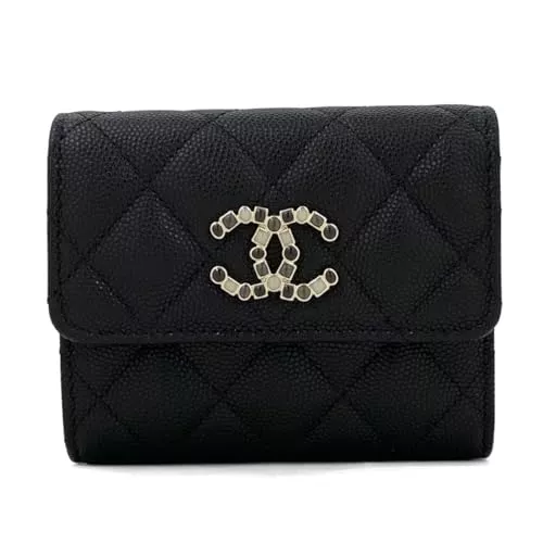 三つ折り財布で幅10.5cmのミニ財布です。上品なレザーのカメリア柄は女性に人気があります。シャネル定番のキルティングデザインで高級感もありますが、収納力が高いので使いやすいです。ミニサイズのなので普段使いしたい方に適しています。
