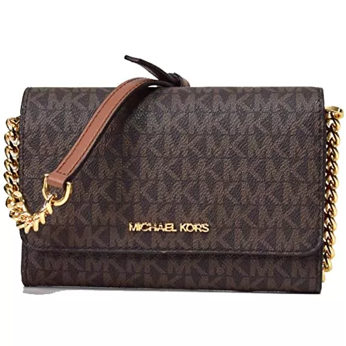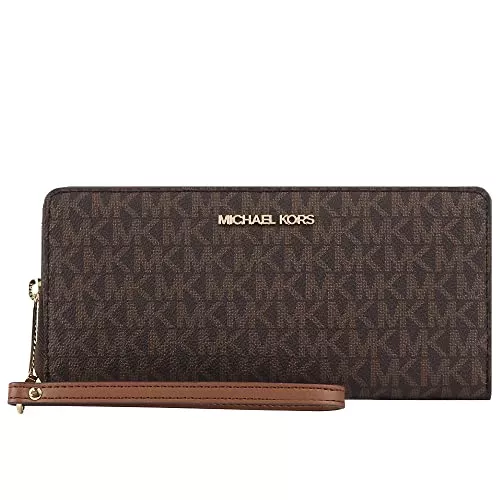 MKのシグネチャー柄に大きなロゴの入ったゴージャスな長財布で、長財布ですので、収納力もばっちりです。こちらのブラウン以外にもホワイトとベージュも展開しています。高級感のある豪華な長財布をお求めの方におすすめです。