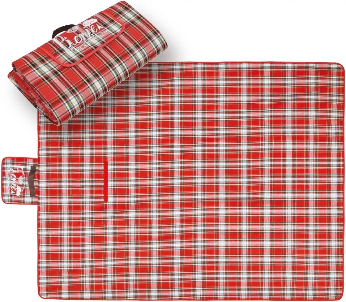 表面は防水耐久性アクリル繊維を使用した起毛素材で、汚れが付着しにくいのが特徴です。裏面には防水加工が施されているので地面や芝からの冷気や湿気を防ぎ、温かく快適に過ごせます。専用収納袋付きで折り畳んで収納するとコンパクトです。