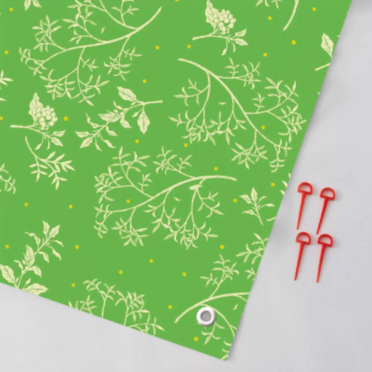 四隅に穴が開いているので固定ペグを地面に挿して使います。固定ペグが付いているだけで、レジャー中に突風が吹いても慌てる必要はありません。次の記事では、おすすめのペグハンマーをご紹介しています。力に自信がない方はチェックしてみてください。