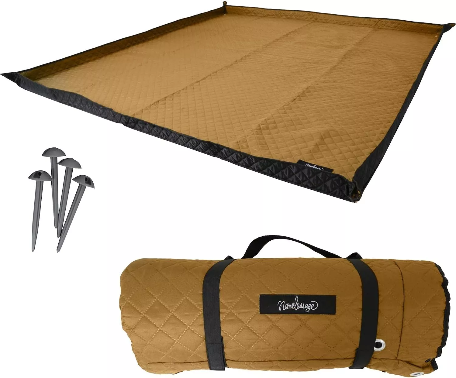 さらに、クルクルっと巻いて付属のゴムで留めれば、コンパクトに持ち運びもできます。近年人気の秋冬キャンプにもぴったりのレジャーシートです。