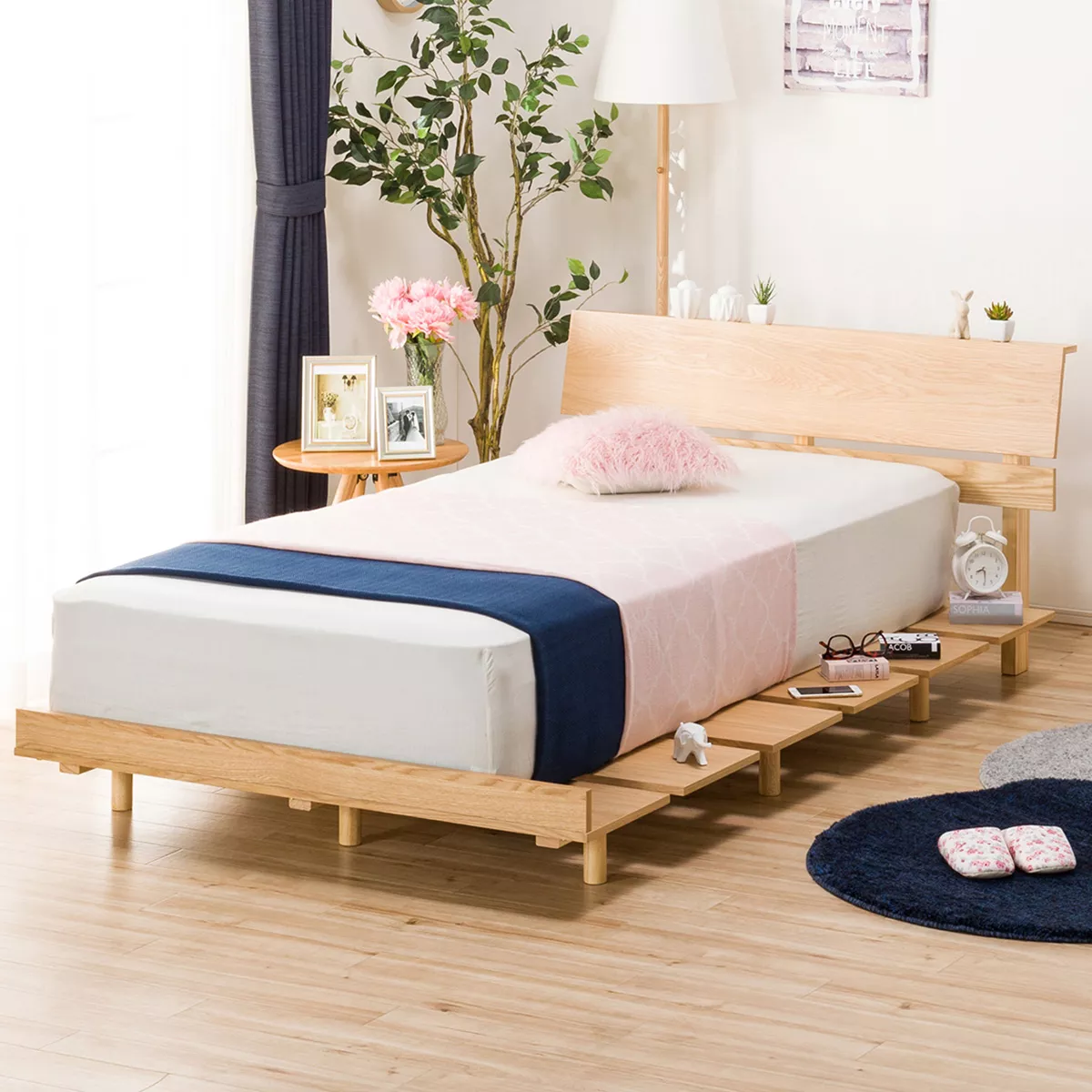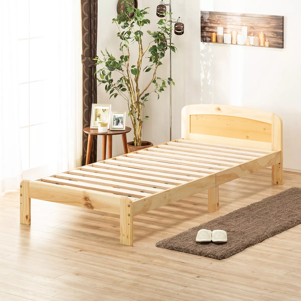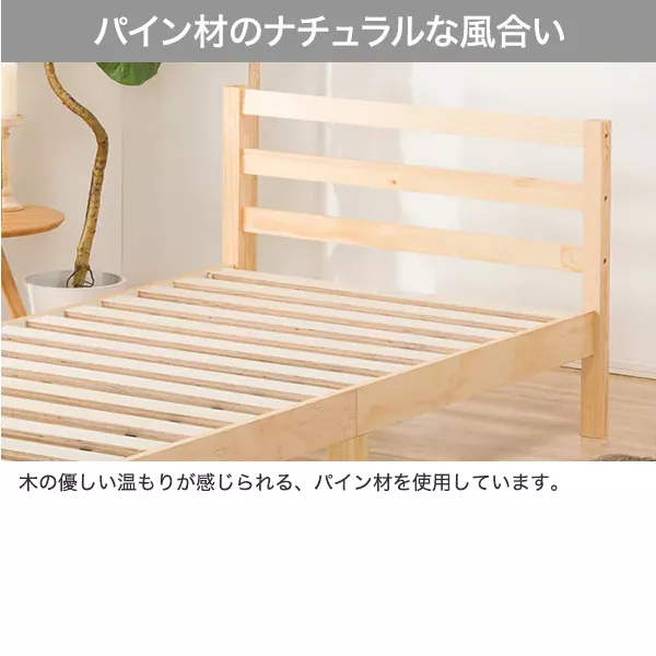 天然のパイン材を使用しているため、ナチュラルな風合いのシングルベッドです。さらに、使っていくうちに風合いが変化します。色の変化や木の質感の変化を楽しみたい方におすすめの商品です。