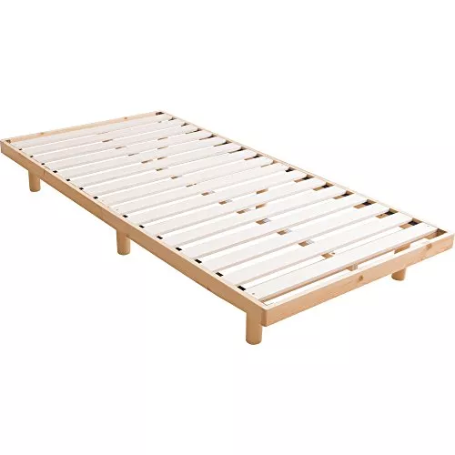 天然木のパイン材を使用し、ヘッドレスタイプのベッドのため圧迫感がありません。また、床板はスノコになっているため通気性に配慮したデザインです。脚をつけたり外したりすることで、高さを調整することができます。
