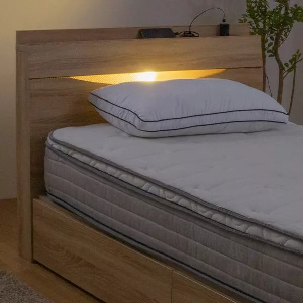 枕元を優しく照らしてくれる間接照明が付いています。常夜灯は天井から照らしますが、照明付きのベッドなら、狭い範囲だけ明るくなります。そのため、部屋が真っ暗になるのを嫌がる子供部屋や、ほんのり明るくしておきたい方におすすめです。