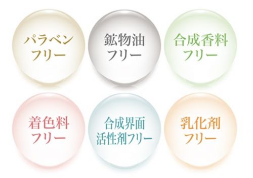 | 不使用成分 | パラベン・鉱物油・合成香料・着色料・合成界面活性剤・乳化剤 |