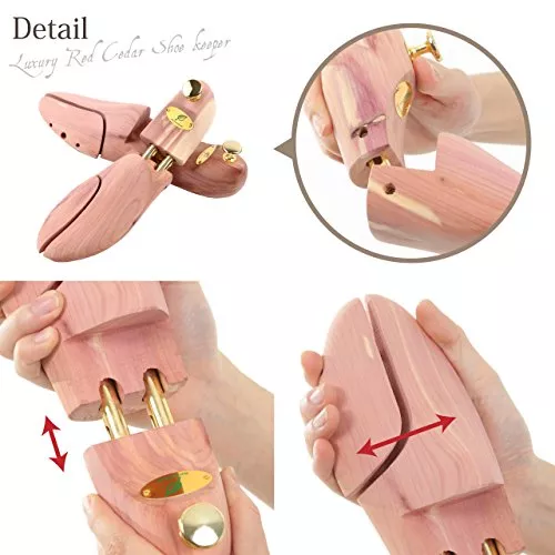 つま先が分かれているスプレッダープレートにより、靴幅に関係なく使えるのも特徴です。シダーウッドに含まれたシダーオイルは防虫・防カビ・防臭・芳香の効果があり、一日履いた靴の湿気を除湿してくれます。