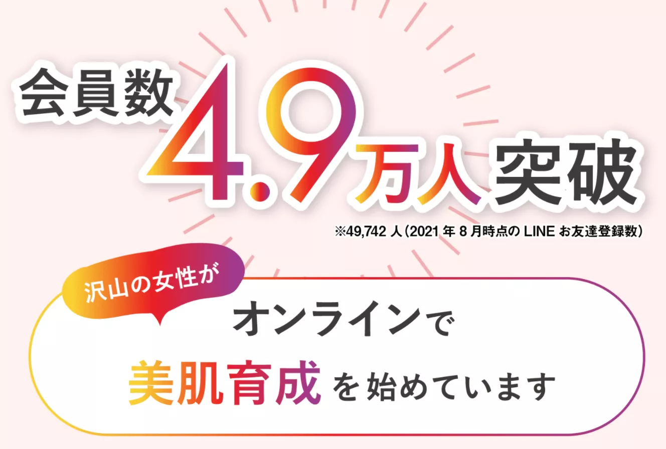 東京美肌堂は会員数が4.9万人※を超える、今話題のオンライン美肌育成のためのサービスです。このサービスを利用して、たくさんの女性がオンラインで美肌育成を始めています。あまりの人気に診察予約が取れにくくなっていましたが、現在は診察受付枠も拡大中です。
