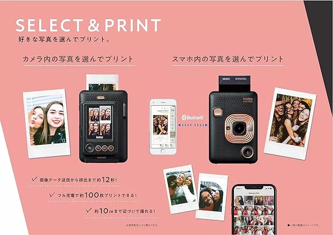 インスタントカメラの中にはモバイルフォトプリンターのように使用できるタイプもあり、撮ったその場でプリントできるうえ、microSDやBluetooth接続を利用してスマホ転送された写真のプリントもできます。