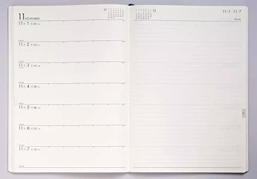 見開きが1週間分となっており、1週間の予定をしっかりと時間軸での記入もできるのがウィークリータイプです。左に日付右に記入欄の「レフトタイプ」、上に日付縦に時間軸がある「バーチカルタイプ」などがあります。