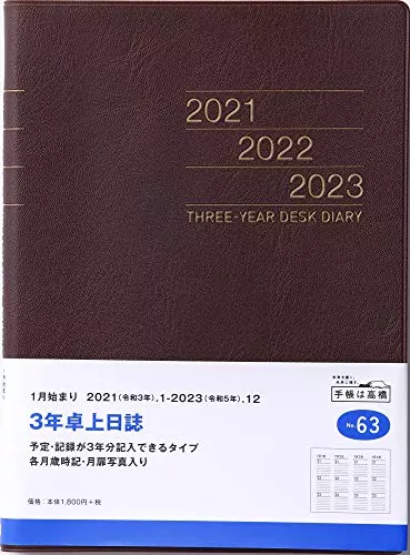 第2位 A5 3年卓上日誌 茶 No.63 高橋書店 | ![]() | Amazon楽天ヤフー | 昨年の今日、何をしていたかすぐわかる | A5判(210×148mm) | 304 | 1月始まり | 皮革調 | 3年対比横ケイタイプ | 3年連用 |