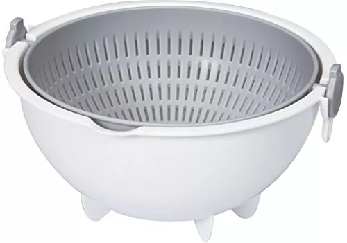 ザルとボウルがセットになった米とぎボウルです。ザルは持ち手と脚が付いています。持ちやすく、食材や水を簡単すくえるうえ、食材にキッチンの汚れや雑菌が付きにくいのが良い所です。ボウルも耐久性が高く、さまざまな調理に使えます。