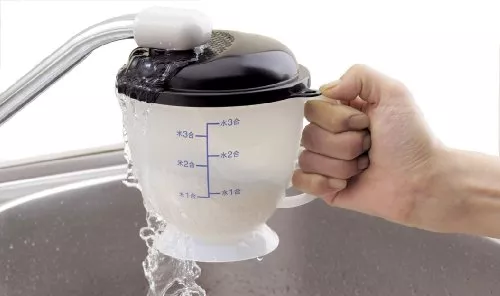 手を濡らしたくない方は、水圧で研いでくれるタイプの米とぎボウルを選びましょう。お米を入れた容器を水道の蛇口にセットするだけで、水が対流して自然にお米を研いでくれます。冬場など水が冷たい時期におすすめです。