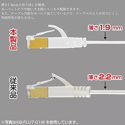アルミテープでケーブルを強化し、加重や屈曲の耐久性を高めた隙間用LANケーブルです。カテゴリー5eに対応しており、日常のネットサーフィンも問題なく使用できます。