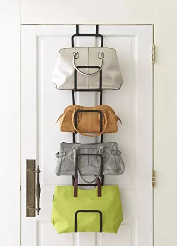 付属のドア用フックを使用してクローゼットやドアに引っ掛け、バッグを縦に並べて収納するバッグハンガーです。互い違いにバッグを収納ができるので、重なり合わずスペースを有効活用できます。
