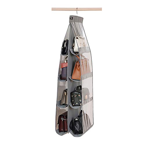 両面に4段ずつ合計8つのポケットと大容量で、クローゼットに服と一緒に吊るして収納できます。バッグやポーチ・ぬいぐるみなどを風通しのいいメッシュ生地で収納が可能です。