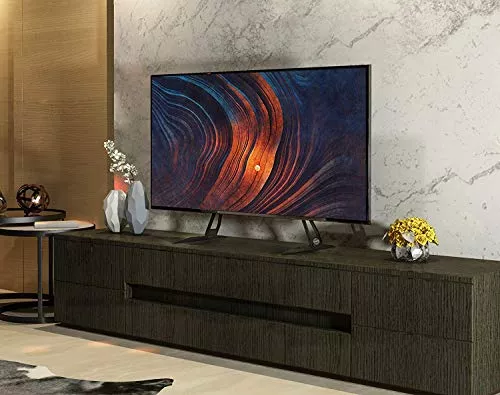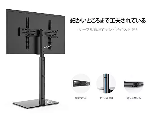 55インチのTVを取り付けました。黒の鋼材で見た目は重厚で形が美しい。場所も思ったほど取らない。揺れにも強そう。備品置き台が二つあるのは便利。TV画面の角度を左右と上下に軽く変えられるのは神技としか言えない。