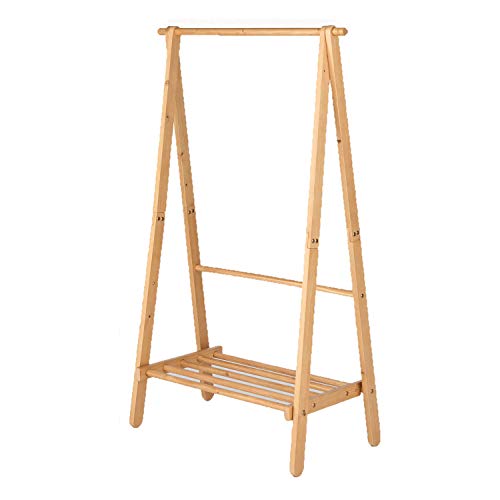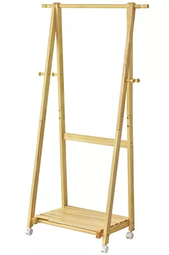 天然木を採用した木製の折りたたみハンガーラックです。シンプルなデザインですが、木のぬくもりを感じられ部屋のインテリアにも馴染みやすくなっていて、充分な高さもあるので、ロングワンピースやロングコートなどもかけられます。