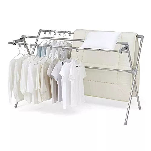 布団や毛布などを干すときにもハンガーラックを活用したいのであれば、収縮タイプの折りたたみハンガーラックがおすすめです。毎日布団を干すのであれば布団干し専用のものを購入した方がよいでしょう。