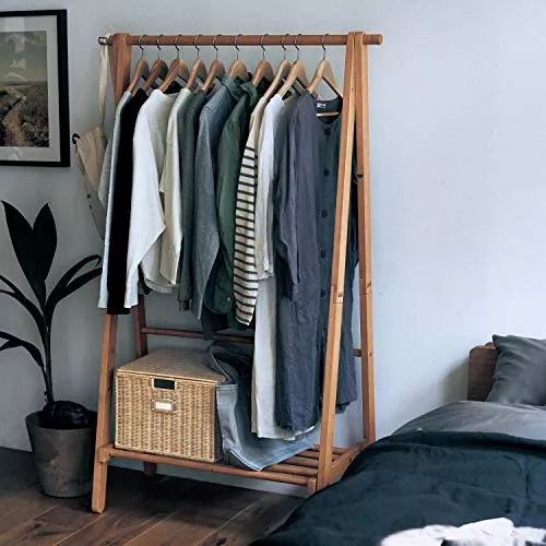 このような木製のハンガーラックは、部屋のインテリアになじみやすいのも特徴です。シンプルでおしゃれなデザインの折りたたみハンガーラックを探している方におすすめします。