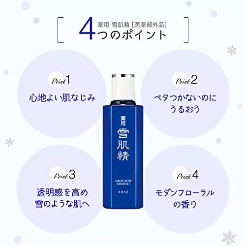 雪肌精化粧水は厳選された和漢植物エキスをたっぷりと含み、水のようなサラッとしたテクスチャーが特徴です。化粧品メーカーであるコーセーのロングセラー商品で、さっぱりした使い心地ながら保湿力があり、敏感肌の方や幅広い年齢の方にお使いいただけます。