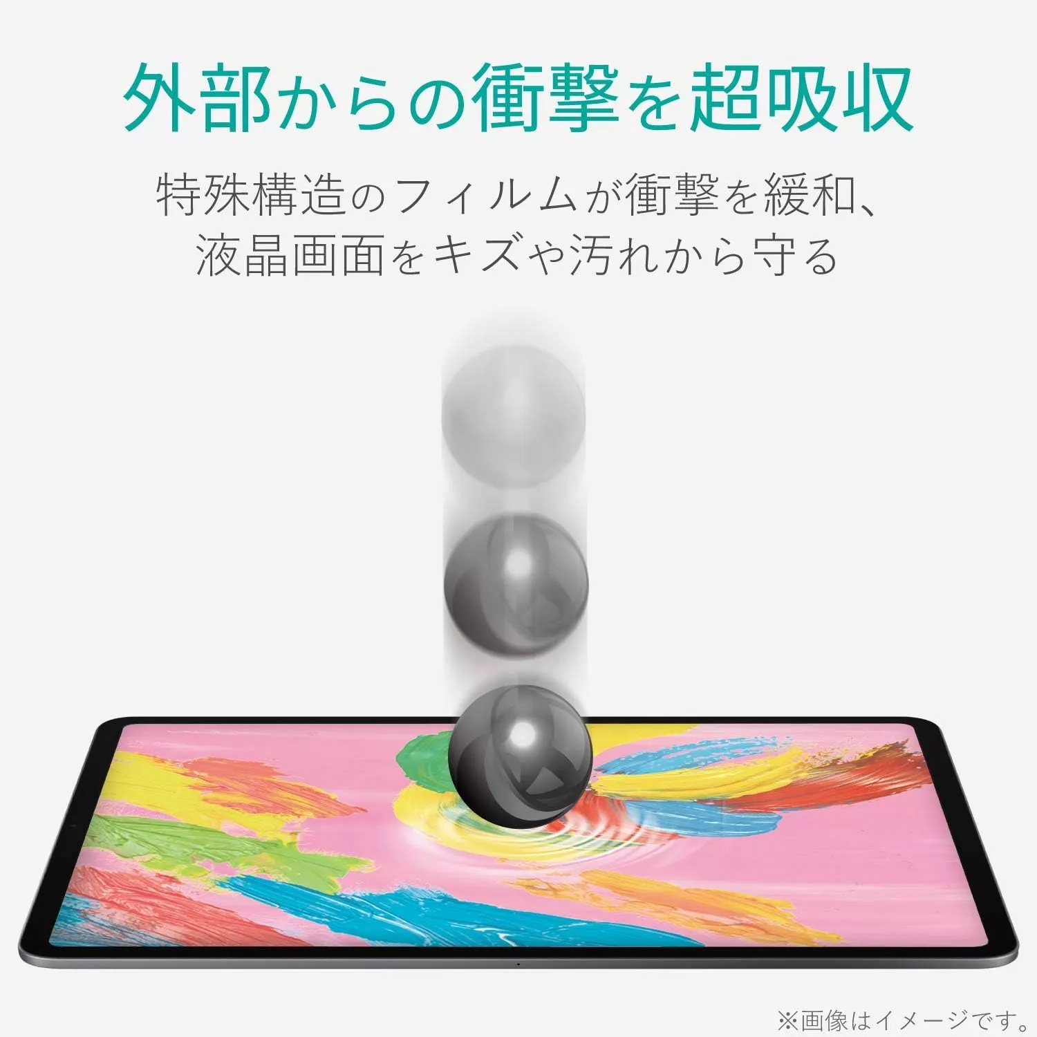 衝撃吸収フィルムはガラスフィルムでよく見られます。貼っていればiPadの画面が割れないように守れるので、iPadを落としがちな方や落としやすい環境で使用する方におすすめのフィルムです。