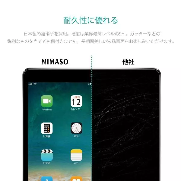 傷や汚れを防いで第9世代にも使えるiPadフィルム