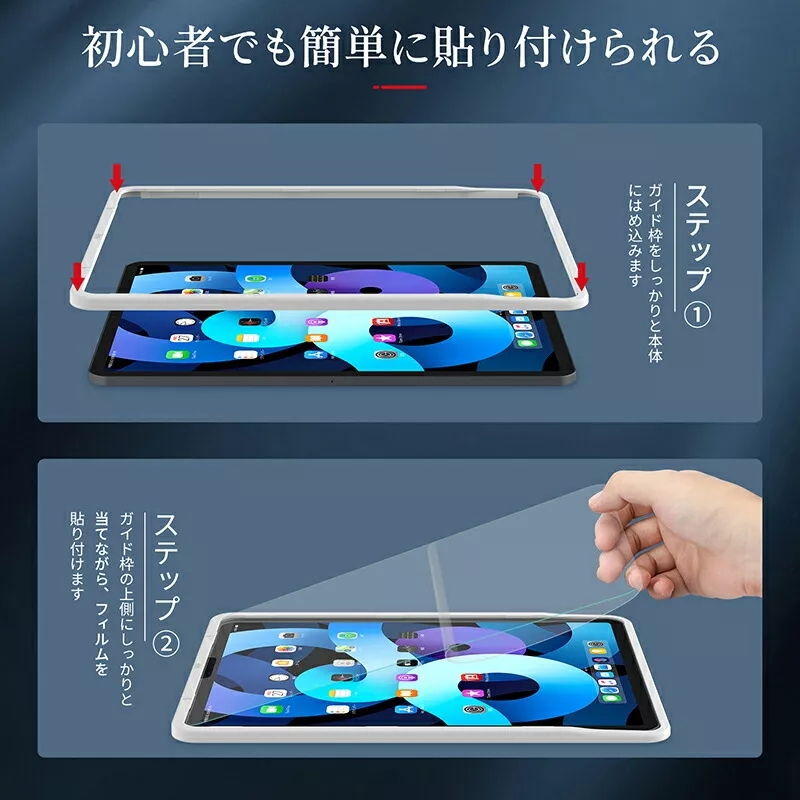 iPad Proは画面が大きいので、気泡やズレなどでスマホにくらべるとフィルムを貼るのが大変です。選ぶ時は、貼りやすさのチェックもするようおすすめします。ガイドや、自己吸着機能などの工夫がされたものなら、楽に貼れます。