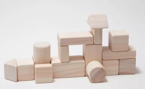 さらに無塗装の白木の積み木の場合、視覚に頼らずに形そのものを認識して組み立てる遊びとして、より豊かな創造力の形成につながる期待もできます。