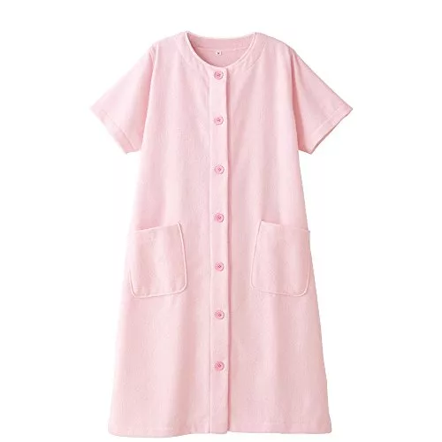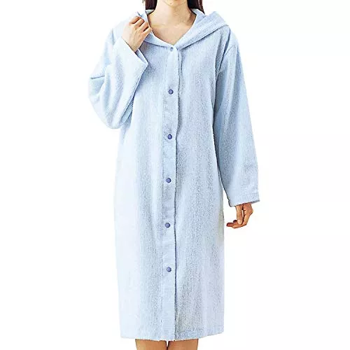 ポリエステル生地のワンピースタイプのバスローブです。速乾性があるので、お風呂上がりに着用すると体を保湿してくれます。ワンピースタイプなので着崩れの心配がなく、前ボタン式なので授乳中のママさんも着られるデザインです。