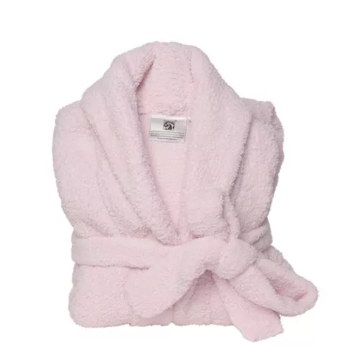 ピンクのバスローブに紐がベビーパープルがとてもかわいく、オシャレでルームウェアとしても人気が高いバスローブです。袖が5分丈で軽くて着やすいのもおすすめのポイントです。Aラインのバスローブなので、ゆったりと着れます。