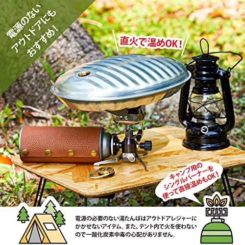 金属製の湯たんぽには、ブリキ・トタンのような直火可能なタイプがあります。焚き火やストーブで直接加熱が可能なので、キャンプなどのアウトドアシーンにおすすめです。中のお湯が冷めても、中身を取り換えずに直接直火で温めなおせるので手間も少ないです。